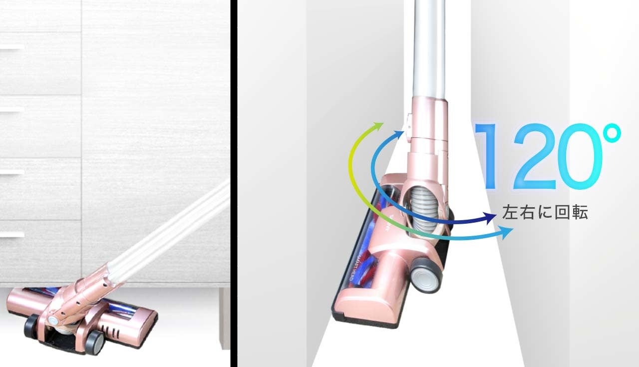 ヘッドが回転するので体を大きく動かす必要はなく、掃除の負担を軽減してくれます。