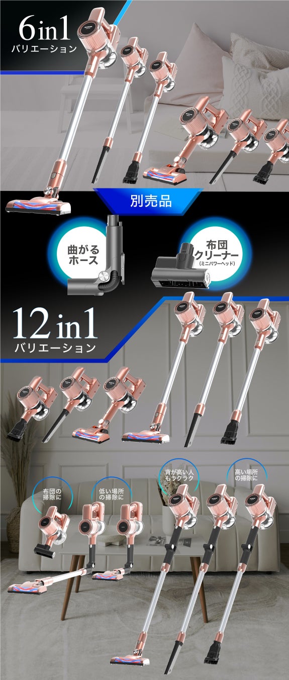 【新発売】『90度曲がるホースで低所の奥まで届き腰の負担軽減!12in1のクリーン排気の掃除機』