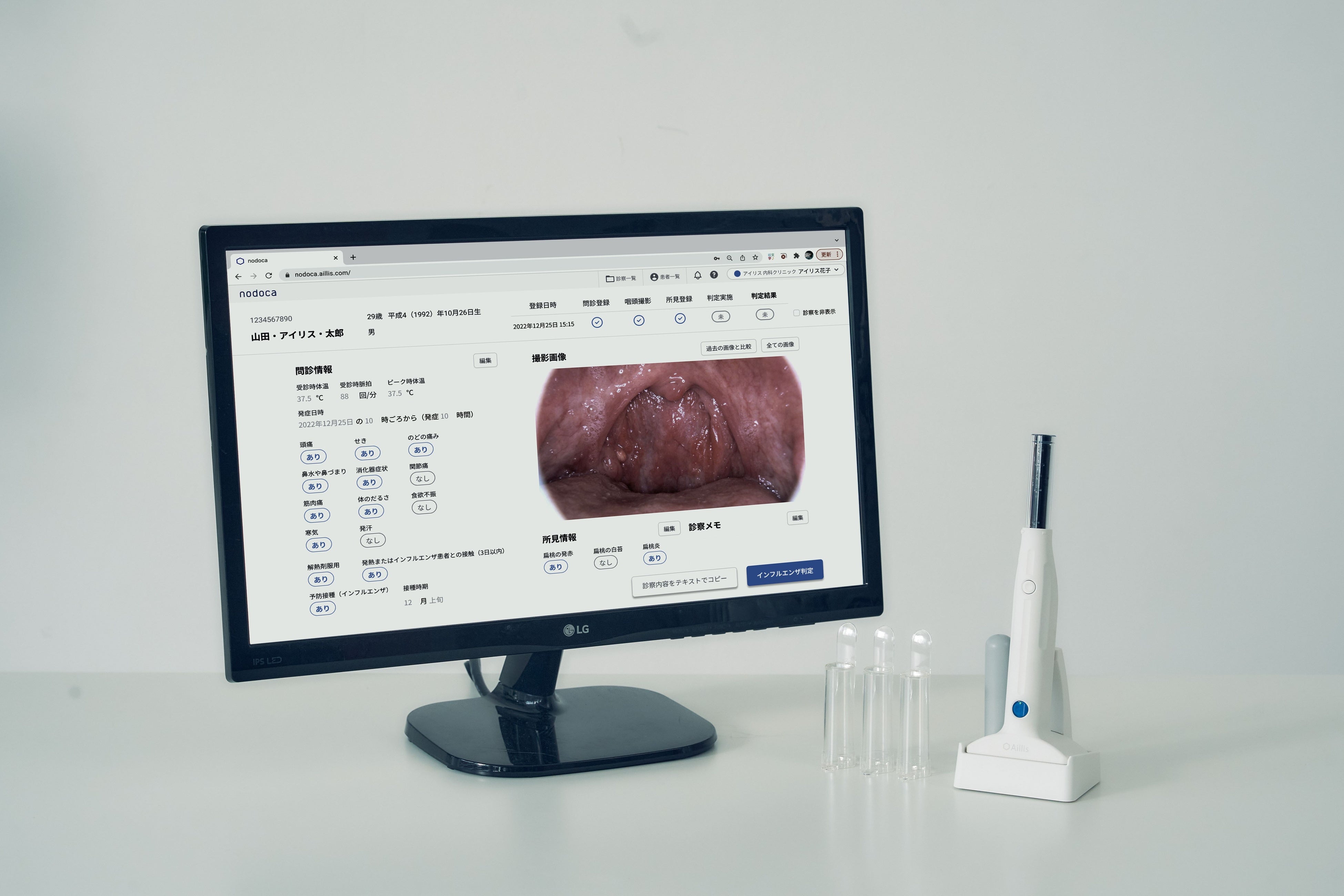 nodocaは、咽頭(のど)の画像と問診情報等をAIが解析し、インフルエンザに特徴的な所見等を検出することでインフルエンザの診断に用いるAI医療機器です。