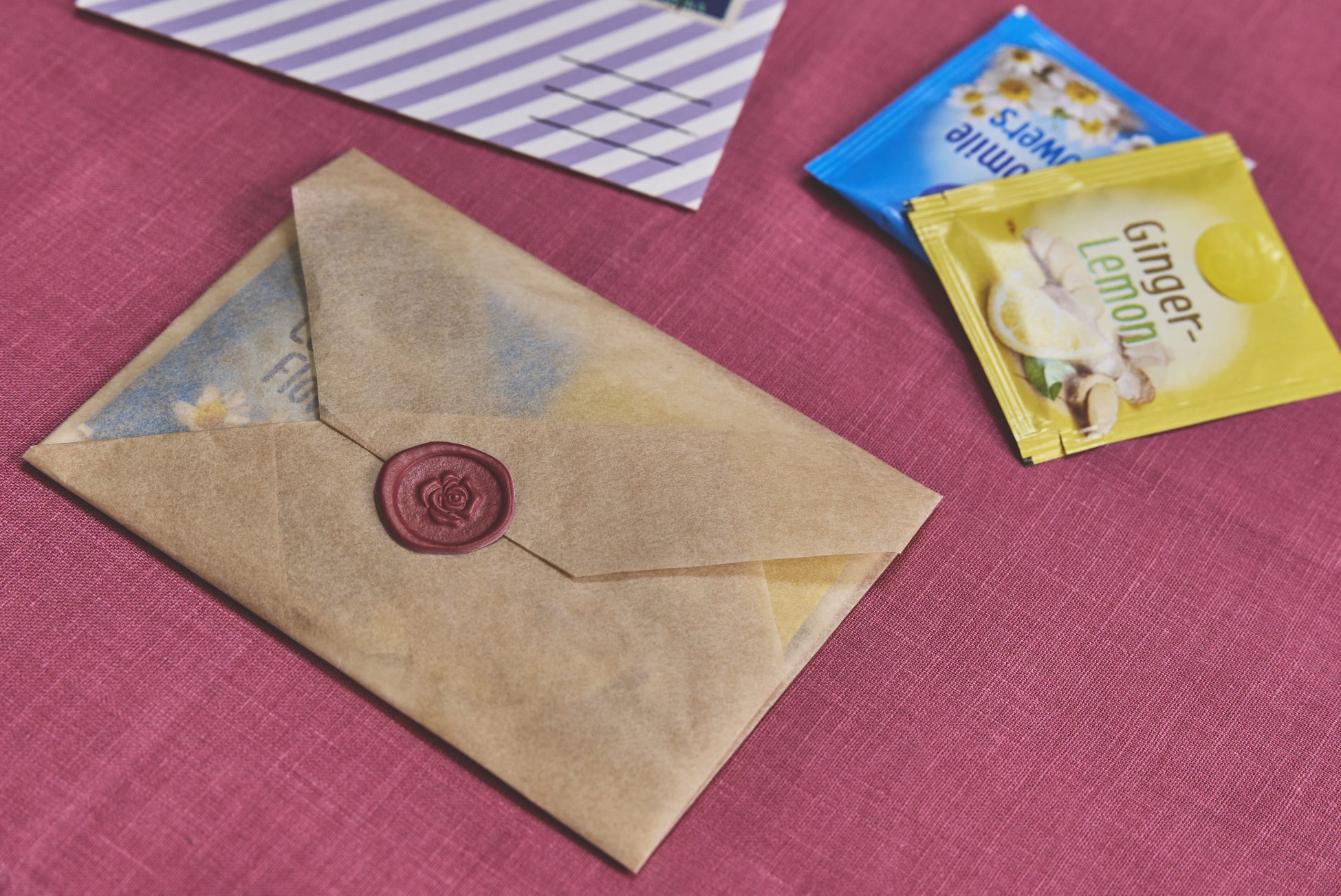 ティーバッグやお菓子などプチギフトの包装に。「クックパーⓇ ブラウンクッキングシート」から中身の色がほんのり透けて見えるのがポイントです。