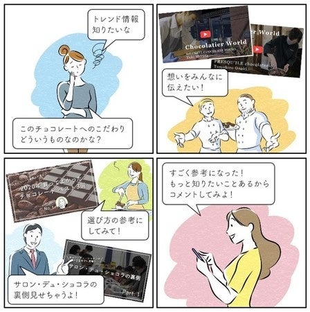 「LE TOUR DU CHOCOLAT 」では、三越伊勢丹のチョコレート担当バイヤーや有名ショコラティエがお届けする最新の情報や、パリやミラノからの海外のチョコレート情報などをユーザー限定で閲覧することができます。さらに、ユーザーそれぞれが好きなチョコレートやチョコレートにまつわる疑問・質問を自由に投稿・情報交換することができ、いつでも「チョコレートの世界」をお楽しみいただける、新たな形のコミュニティサイトです。