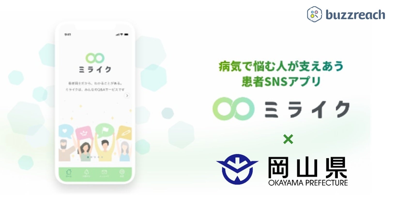 製薬企業と患者を直接つなぎ、治験から市販後マーケットまでの課題解決を支援するプラットフォームサービスを展開している株式会社Buzzreach(本社:東京都港区、代表取締役CEO:猪川崇輝、以下、Buzzreach)は、岡山県(以下、岡山県)と共同で、がん患者専用ソーシャルネットワーキングサービス「ミライク」の試験導入を開始します。この協力は、岡山県在住のがん患者に安心して相談し合えるコミュニティと最新のがん情報を提供することを目的として実施します。