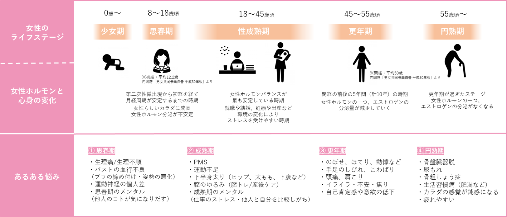 ▼女性のライフステージに応じた心とカラダの変化と、あるあるお悩み