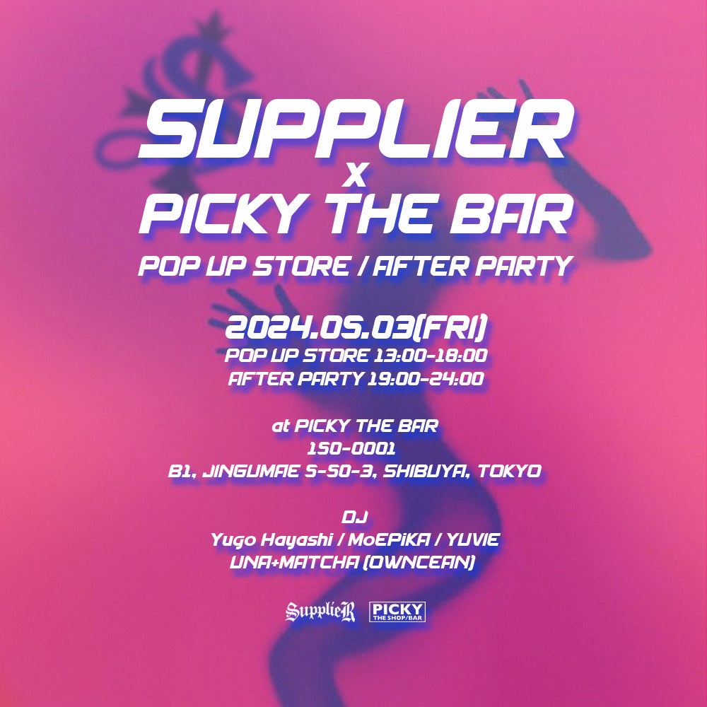 「SUPPLIER」が、「PICKY THE SHOP / BAR」とコラボPOP UP STORE・AFTER PARTYを開催。