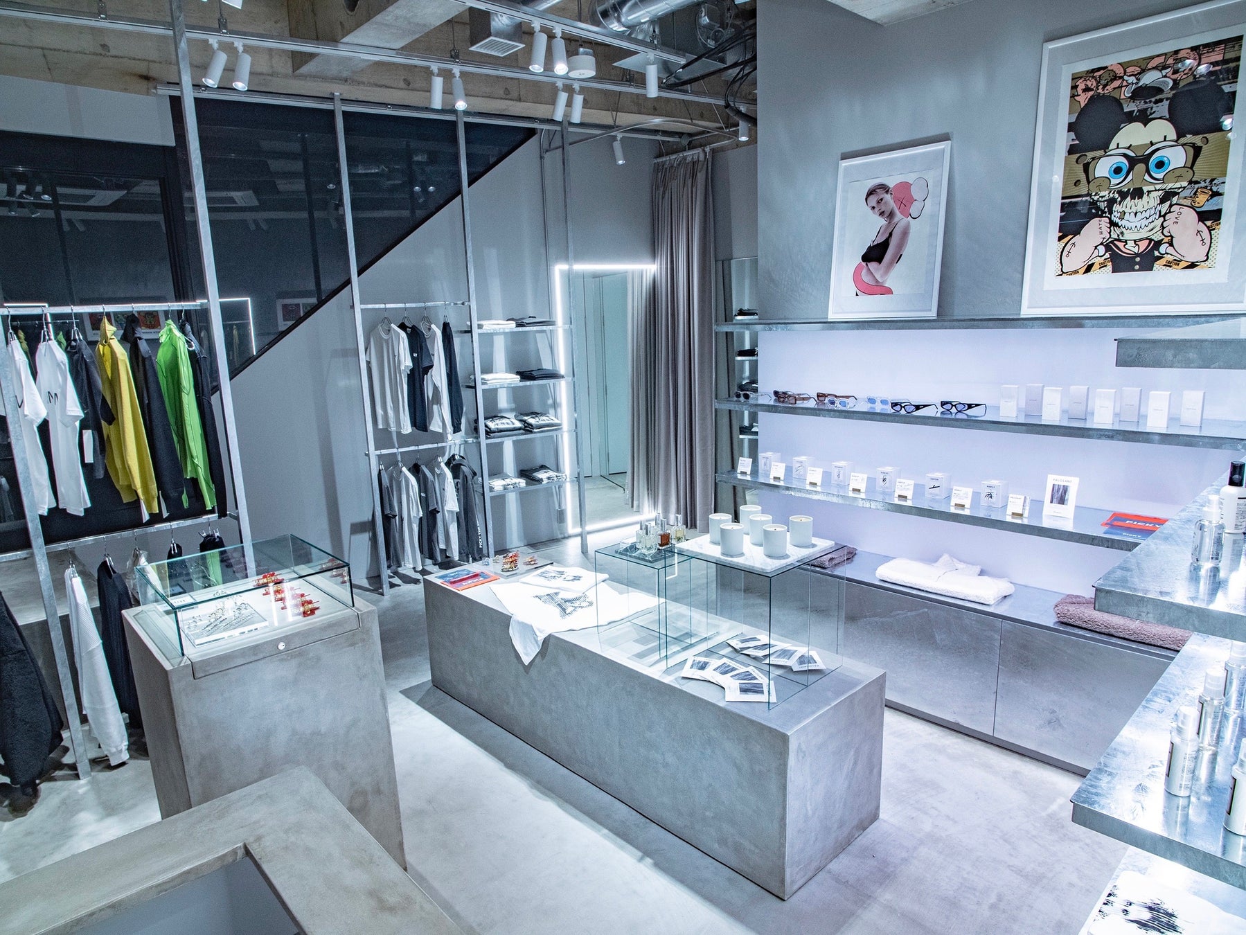 約100㎡のスペースに、奈良裕也がキュレーションしたアイテムが揃うクールモダンなショップと、スペイシーでファンタジックをコンセプトにしたバーが併設する。