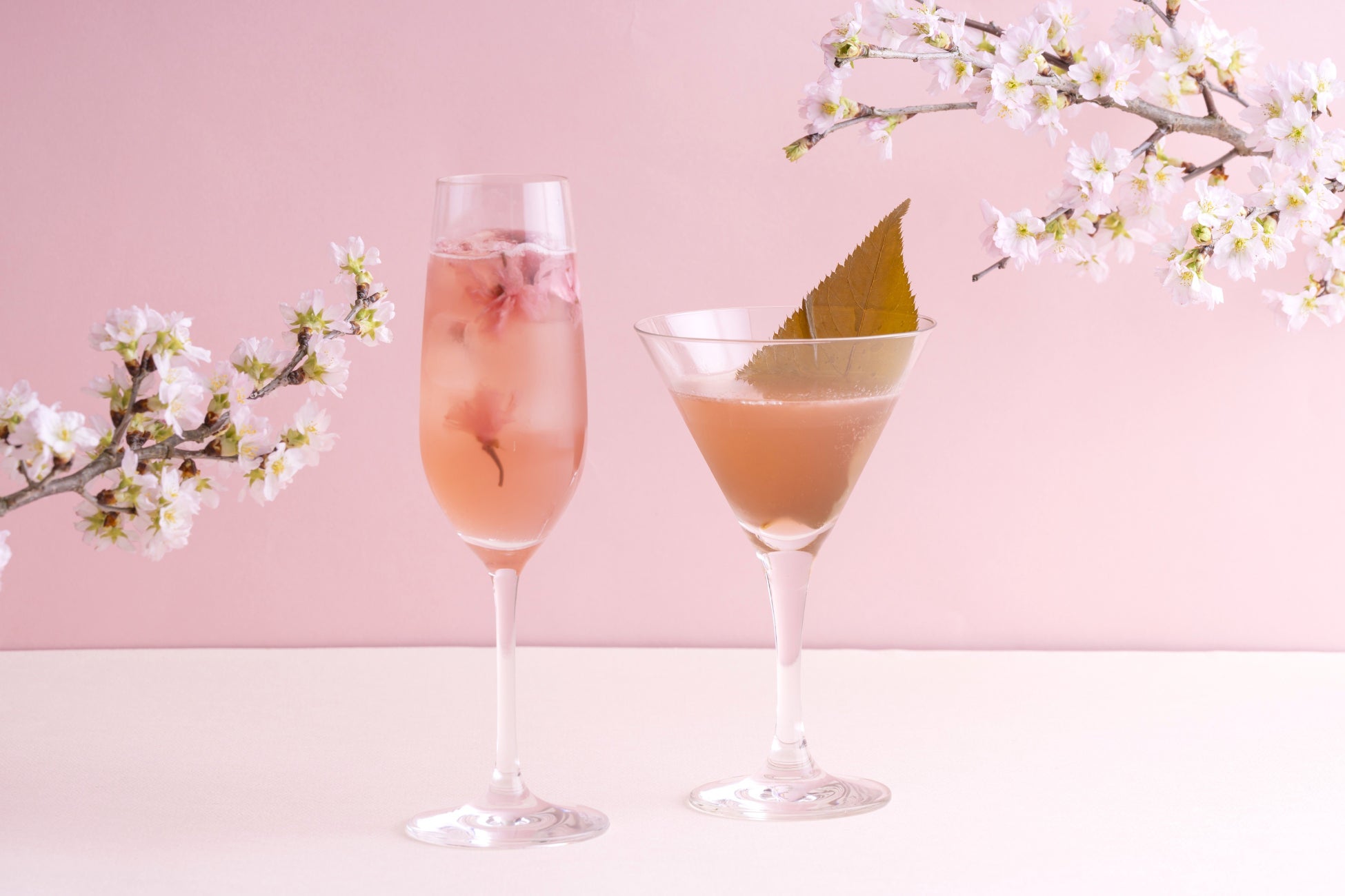 桜の花、葉など日本ならではのボタニカルと、伝統的なジンのボタニカルを使用した、サントリージャパニーズクラフトジン「ROKU〈六〉」ブランドの新製品「六ジン Sakura Bloom Edition」を使用した2種類の桜カクテルをご用意しています(各2,200円)。