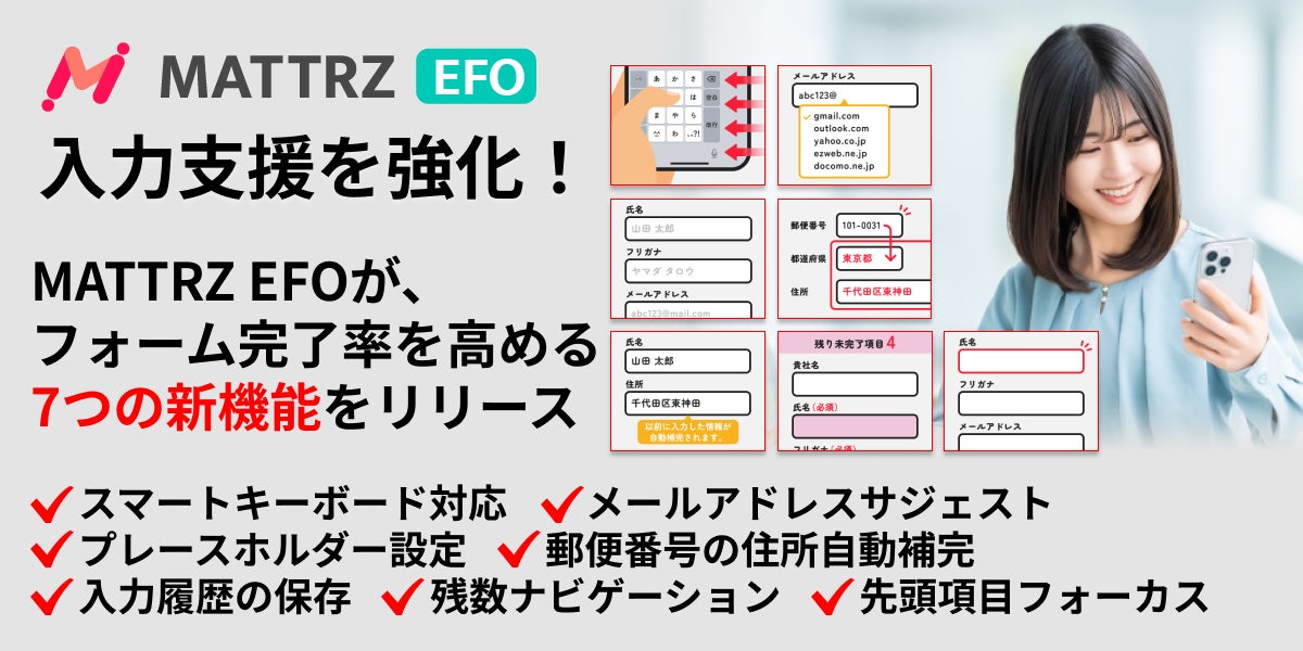 SaaS事業を展開するMattrz株式会社(本社:東京都千代田区、代表取締役:横川慶毅)は、当社が提供するEFOツール「MATTRZ EFO」において、ユーザーの入力体験を大幅に改善する7つの新機能を、本日2025年10月1日より提供開始したことをお知らせします。