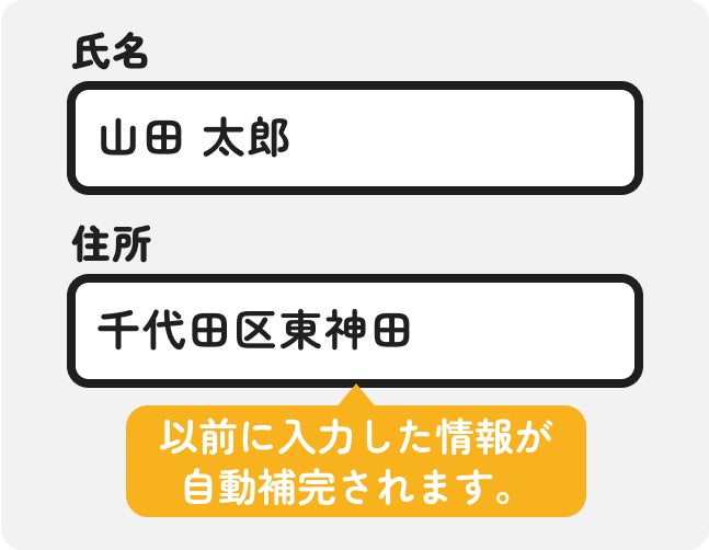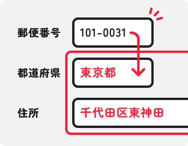 郵便番号入力に応じて住所欄を自動補完。住所入力の手間を大幅に削減します。