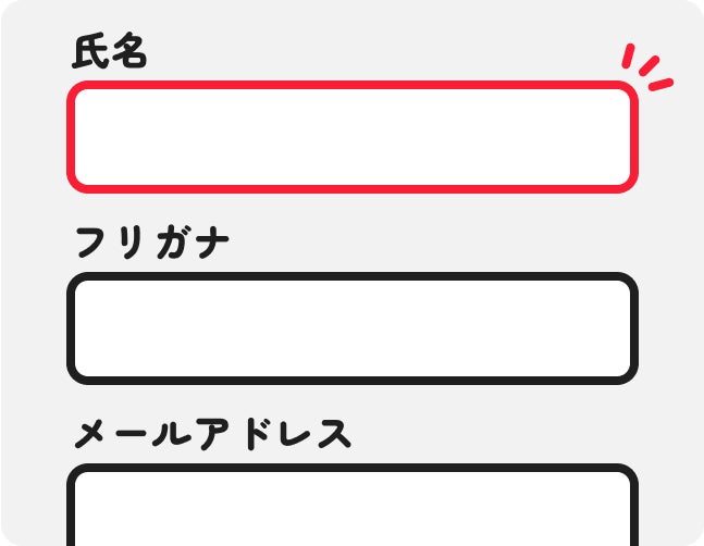 フォーム表示と同時に最初の入力欄へ自動フォーカス。ユーザーの迷いを防止します。