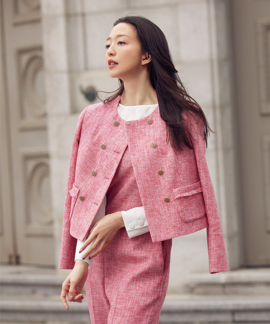 今回、展開するカタログ(https://www.anayi.com/info/CSfTopics.jsp?file=EternalLine2024)では、Navy、Tweed、Color、Arrangeの4つのキーワードに沿って、スタイリングを提案。オリジナルのミックスツイード生地を使用したジャケットやワンピースをはじめ、上品で存在感のあるドレスやオールインワン、シルエットが美しいパンツなど、セレモニーだけでなくオフィスや普段使いまで、様々なシーンで活用いただけるアイテムをご用意しました。