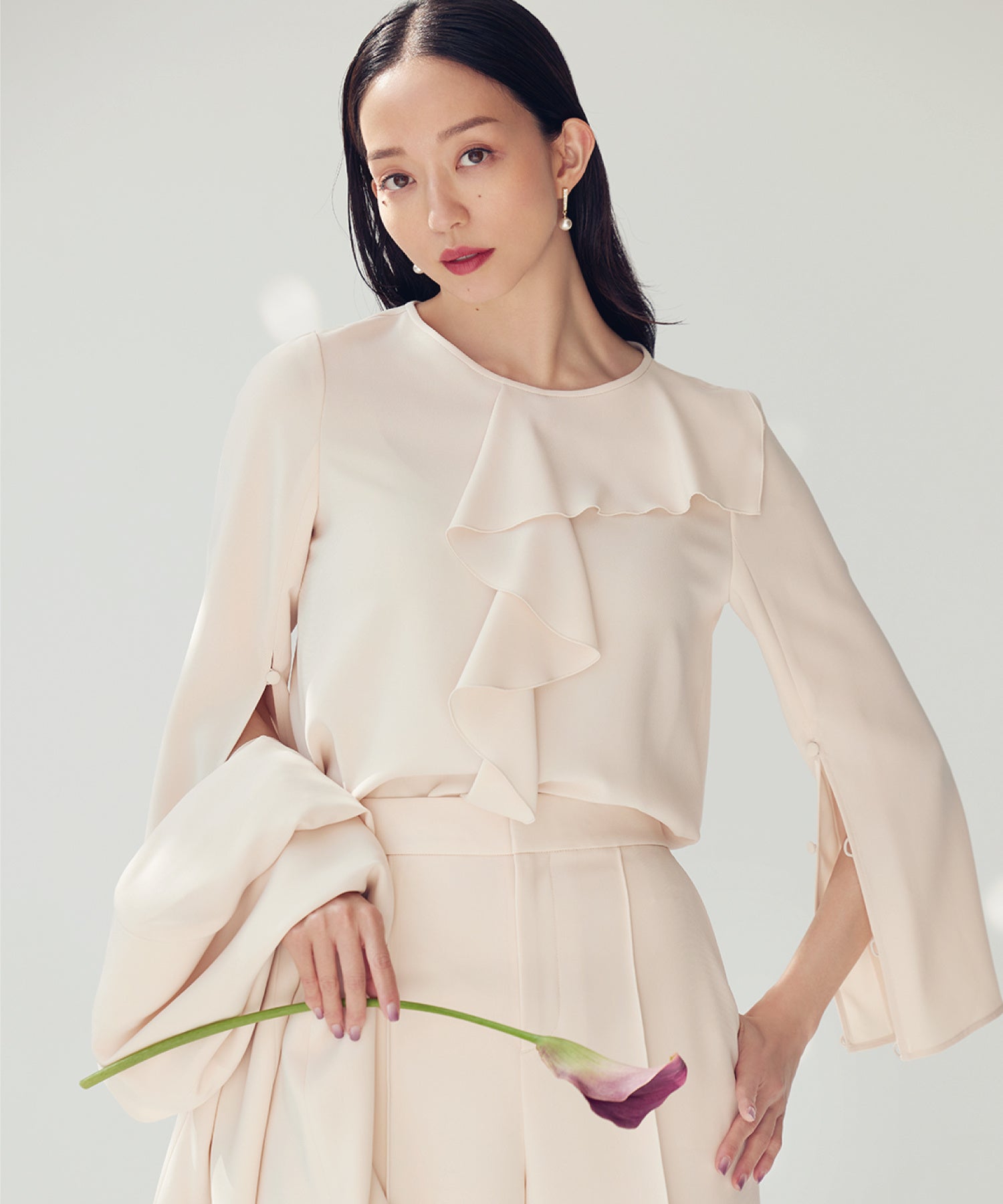 ・ストレッチクロスアシメフリルブラウス ¥29,700(税込)