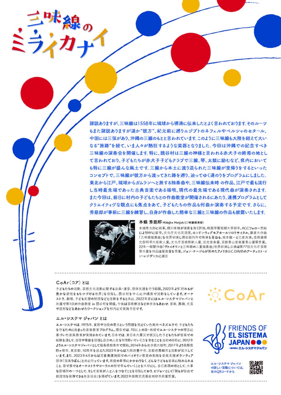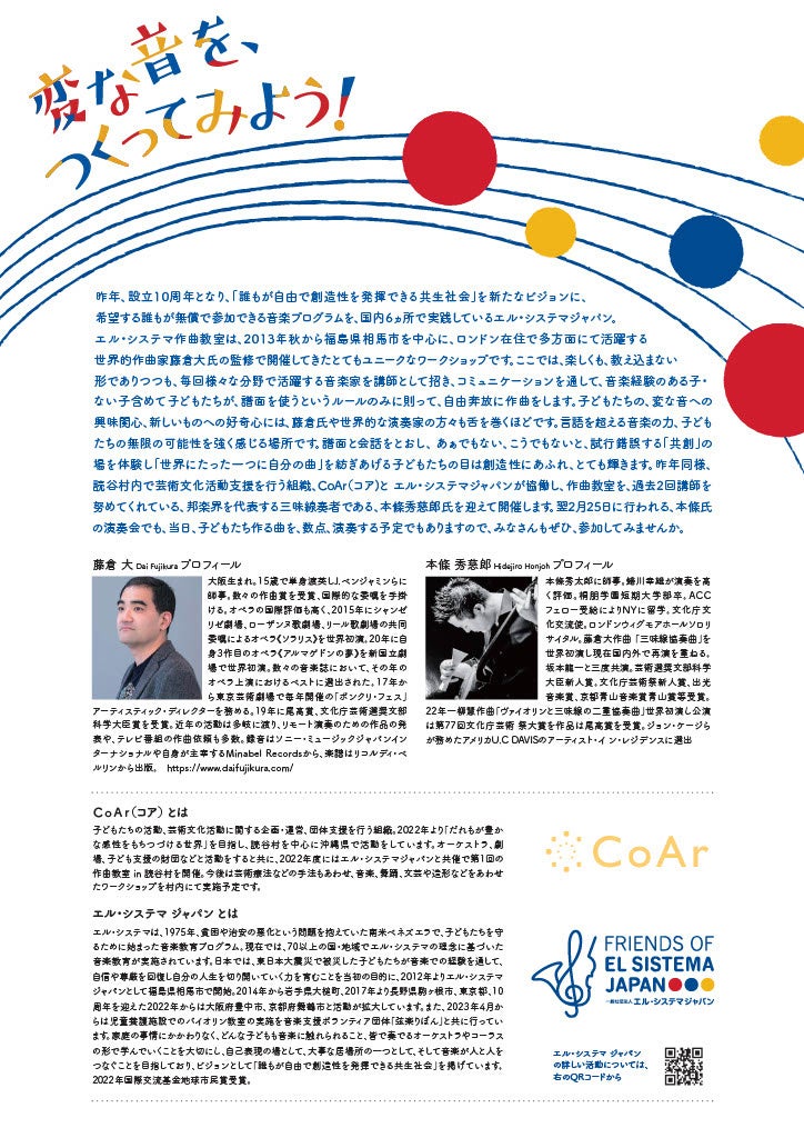 問い合わせ先:一般社団法人 エル・システマジャパン、一般社団法人CoAr
