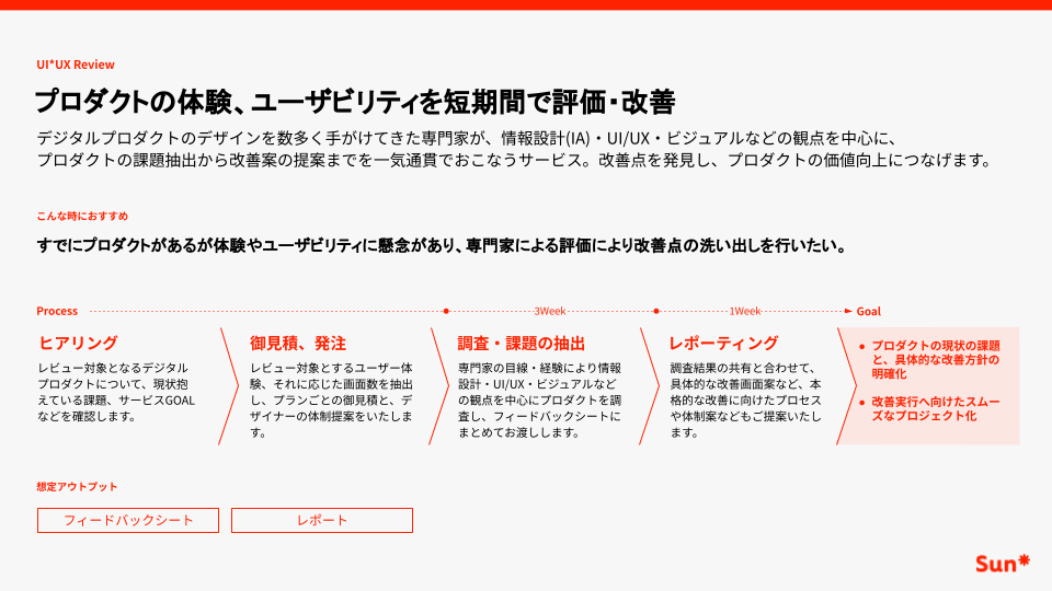 Sun*、プロダクト体験とユーザビリティを短期間で評価・改善する「UI*UX Review」の提供を開始