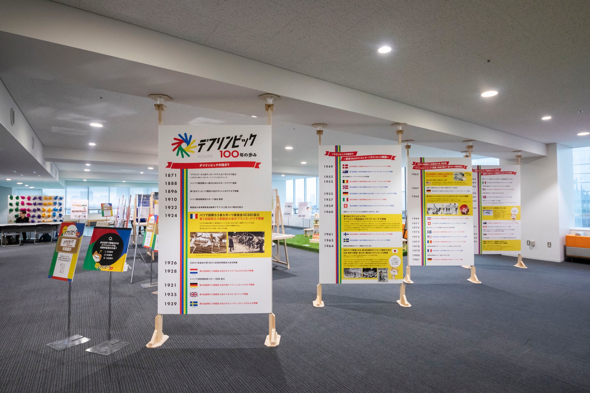 12/9(月)までの会期中、渋谷区役所本庁舎15Fの会場では、デフリンピックにまつわる常設展示を行っています。デフリンピック100年の歴史を振り返る年表展示や、各競技のデフアスリートのインタビューなど、見応えのある充実の内容です。小さなお子さんと一緒に、親子でくつろげる芝生の絵本コーナーもご用意しています。子どもから大人まで、楽しみながら学べるイベントですので、是非お気軽にお立ち寄りください。