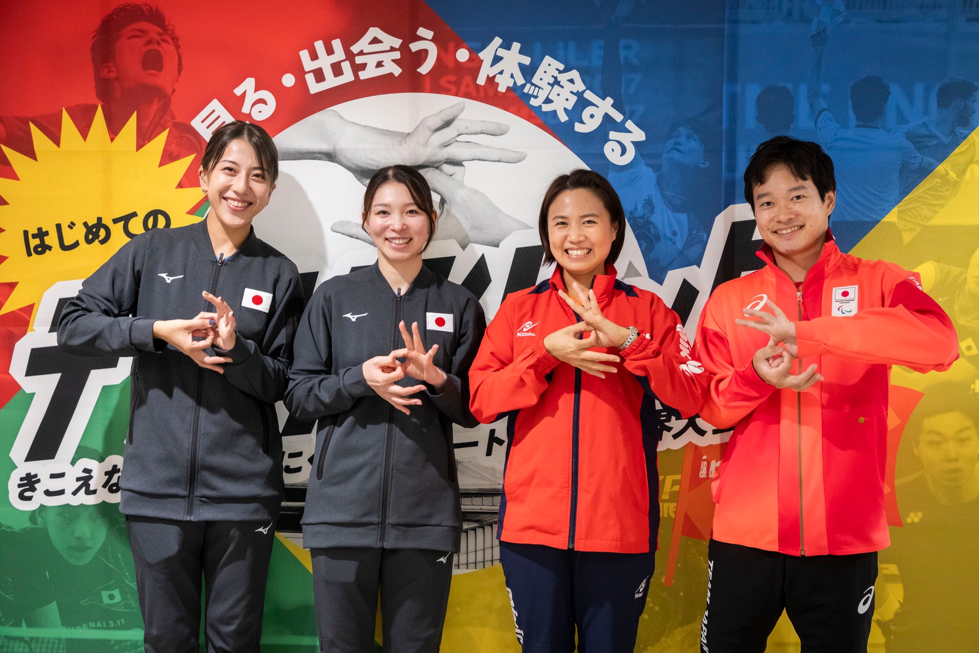 ゲストにお招きしたのは、デフ卓球メダリスト 亀澤理穂選手、山田瑞恵選手。そして現在はスポーツキャスターや解説など幅広く活動されている平野早矢香さん、今年夏のパリパラリンピックでの活躍も記憶に新しい、パラ卓球 岩渕幸洋選⼿の4名。