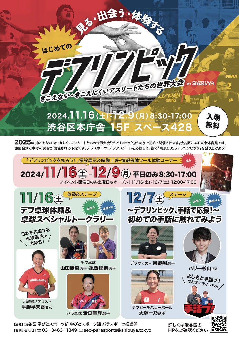 デフリンピック1年前特別イベントを渋谷区役所で12月9日まで開催中!オープニングイベントでは、五輪銀メダリストの平野早矢香さんをはじめとする卓球アスリートが集結しました!