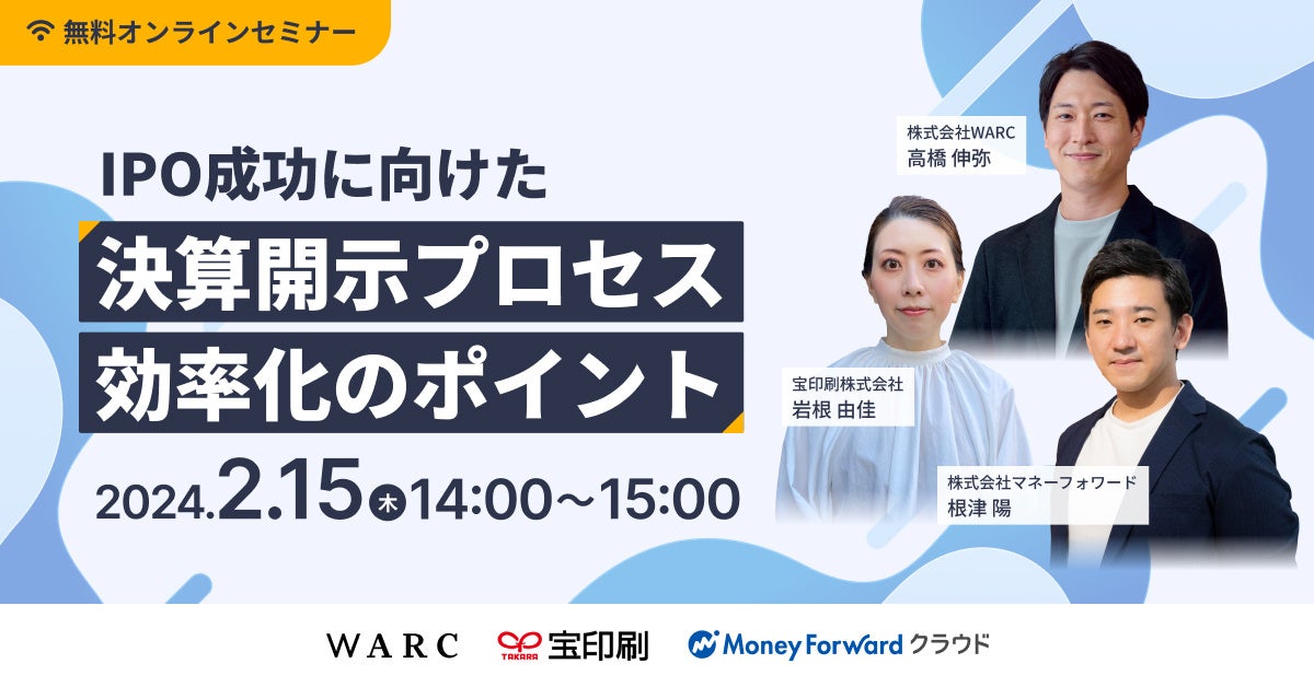 宝印刷、マネーフォワード、WARCの3社共催!IPO準備企業の経理部門向けイベント