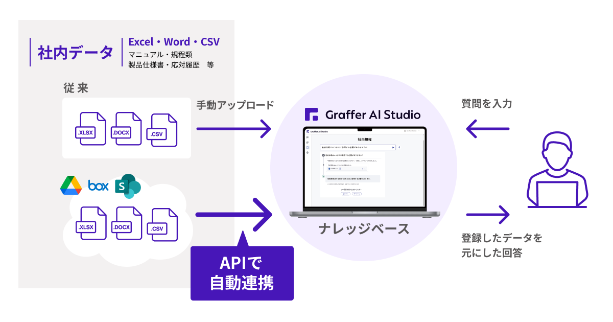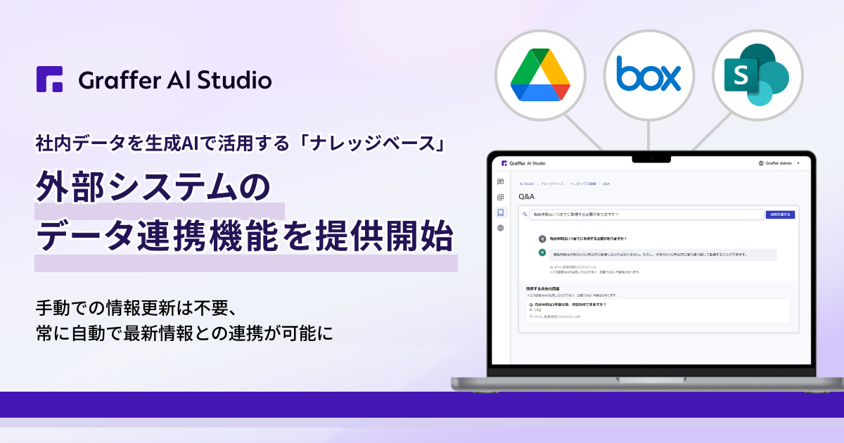 Graffer AI Studio、社内データを基に高精度なAI情報検索ができる「ナレッジベース」に外部システムのデータ連携機能を提供開始