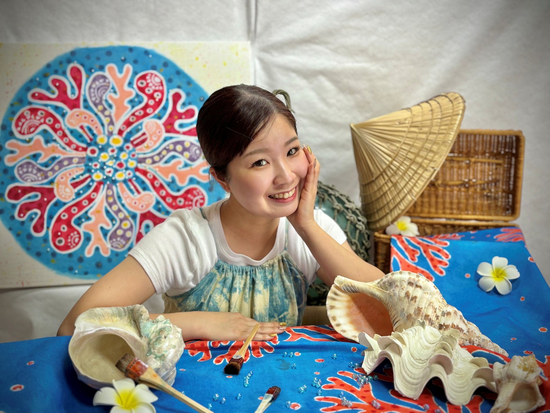 当リゾートに滞在しながら制作活動を行うアーティストを支援する本プログラムでは、紅型アーティスト伊差川 彩花さんを再びお招きいたします。