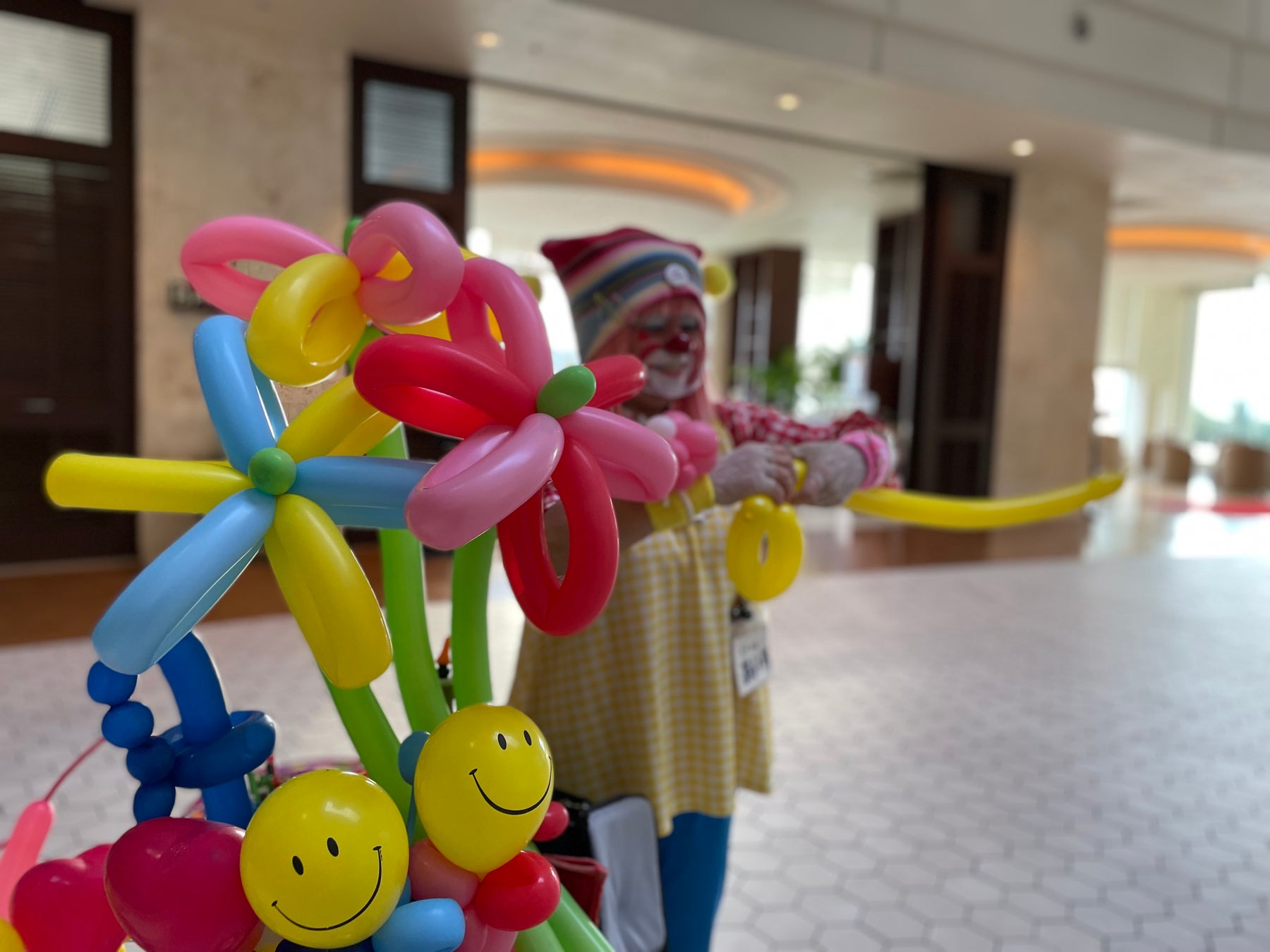 ピエロによるバルーンアートやボディジュエリーなど、楽しい日替わりパフォーマンスで皆さまをお出迎えいたします。