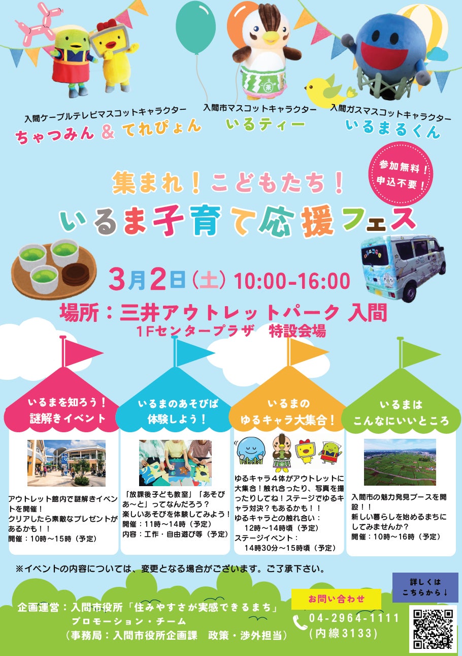【入間市】3月2日(土)三井アウトレットパーク 入間にて子育て世帯向けイベント「集まれ!こどもたち!いるま子育て応援フェス」開催!