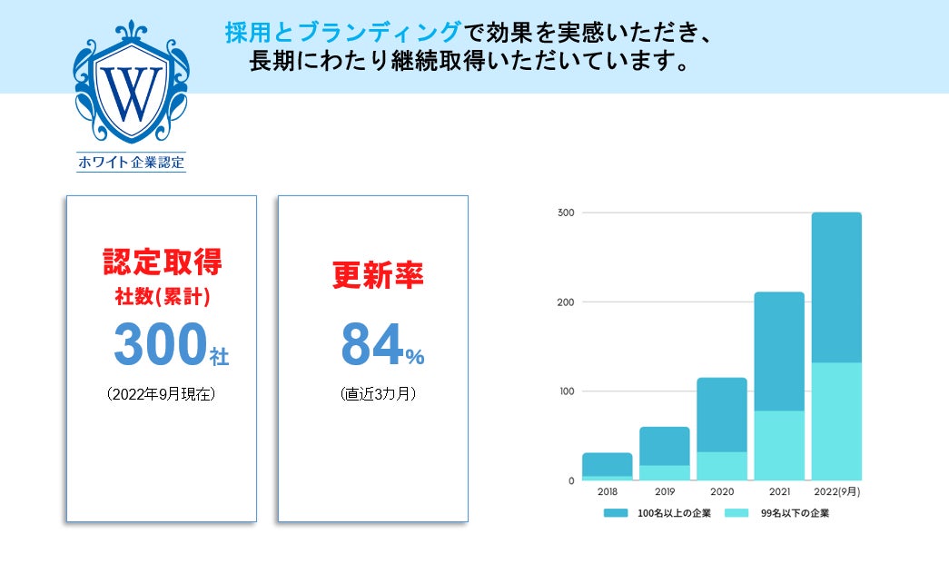 『ホワイト企業認定』の累計認定取得社数が300社に到達いたしました!