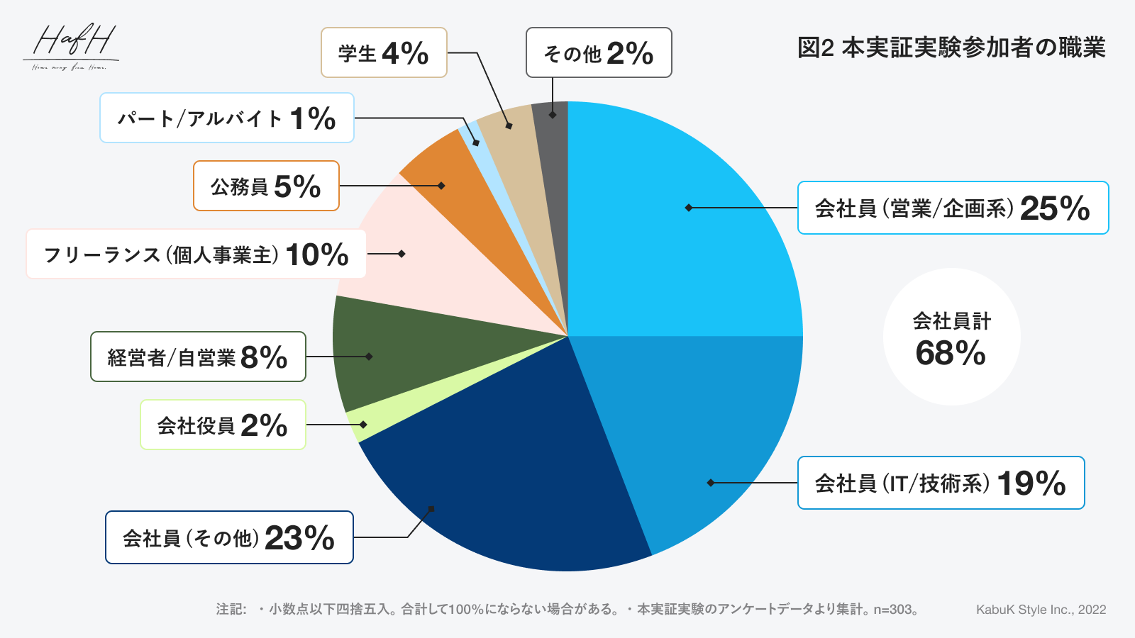- 20-30代の若年層が多く参加し、会社員の参加が68%。