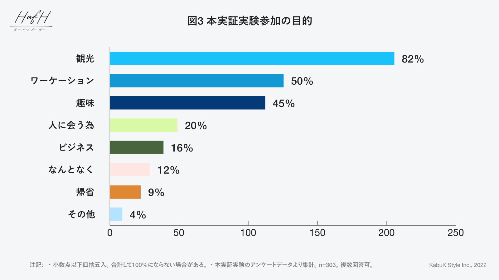 この度、本実証実験で得られた知見を共有することで、さらなるライフスタイルの多様化を支援するため、本実証実験参加者の属性や利用動向、アンケートに基づく参加目的等のデータを一部公開いたします。