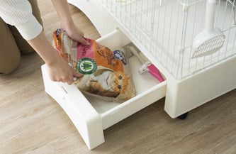 ケージ内にトイレを別で設置する場合、思ったよりもケージ内が狭くなり、トイレ掃除をする際にトイレが出し入れしにくいという問題が起こることもあります。このキャットケージはトイレが引き出し式になっているので、ケージ内の場所をとることもなく、トイレ掃除の際は、ケージの外からトイレを引き出すことができるので、出し入れも簡単にすることができます。