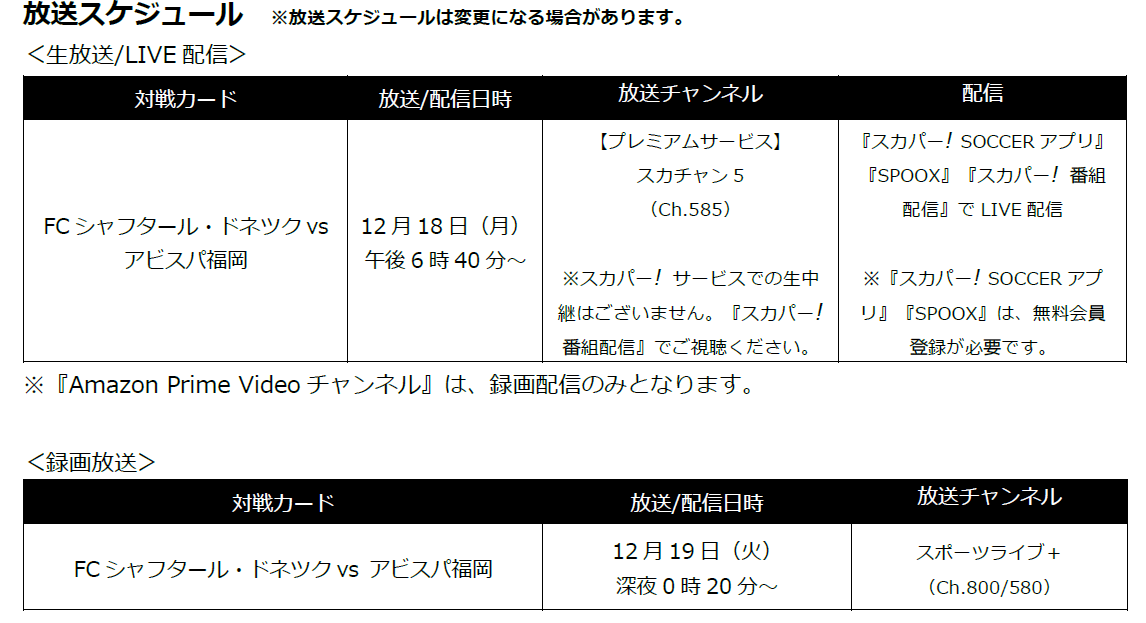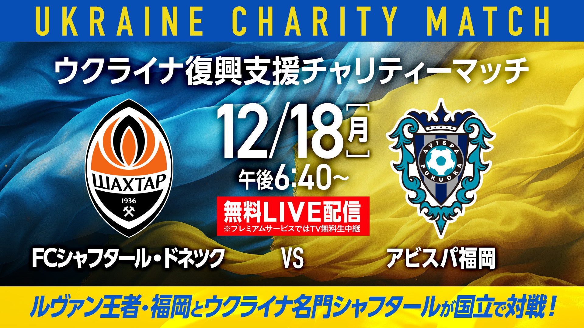12/18(月)ウクライナ復興支援マッチFCシャフタール・ドネツク vs アビスパ福岡スカパー! で無料生放送/LIVE配信決定‼