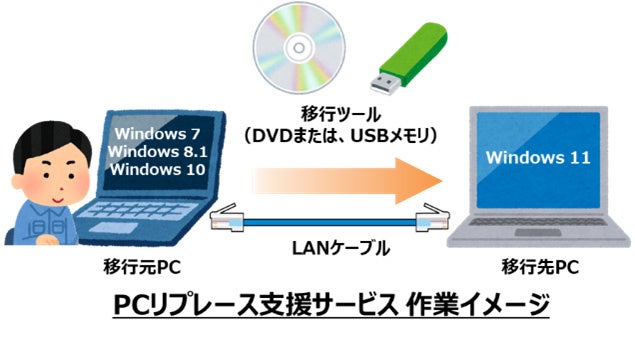 そのほか、サービススタッフが使用する移行ツール「PCリプレース支援ツール」のみの販売も行いますので、ツールを使用してお客様自身で作業することもできます。