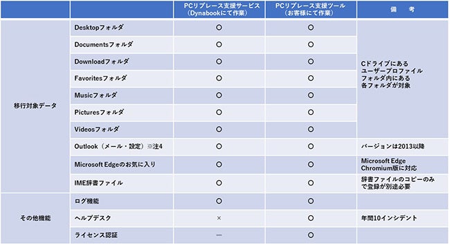 ※注3:移行ツールによる移行対象データは、お客様のご要望によりカスタマイズ(有償)可能です。また、PCリプレース支援サービスについては、移行対象データ以外のデータ移行も有償にて承ります。