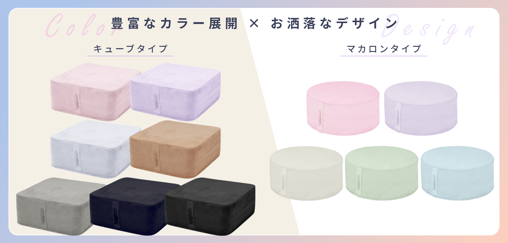OPPOMANは全種類カバーの取り外しが可能。さらに、洗濯機で丸洗いができます。
