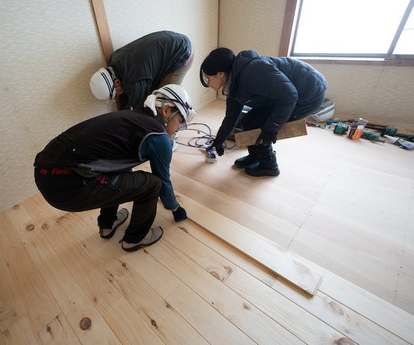 ADDress北海道中川A邸は令和6年度にプロの大工さん指導の下、DIYワークショップを複数回開催し、町内外の多くの方々が参加しました。皆で力を合わせて作り上げた想いのこもった家です。