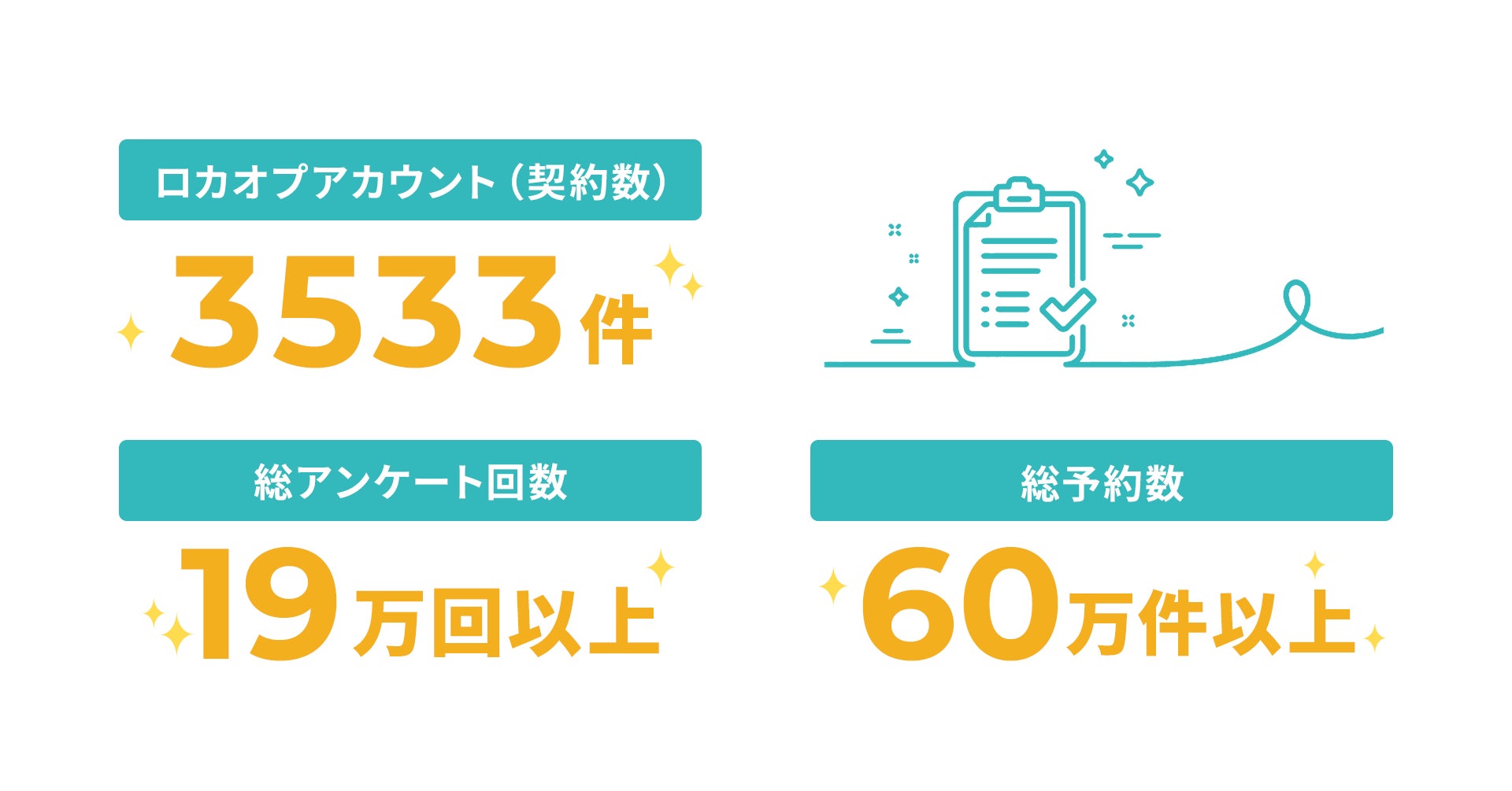 また、オールインワンで備わっているWebサイト制作ツール「ロカオプサイト」で作成されたWebページへのアクセス数(総PV数)は250万を超え、Web予約システム「ロカオプ予約」による予約数も60万件以上と、多くのご利用企業様の売上向上に貢献することができました。