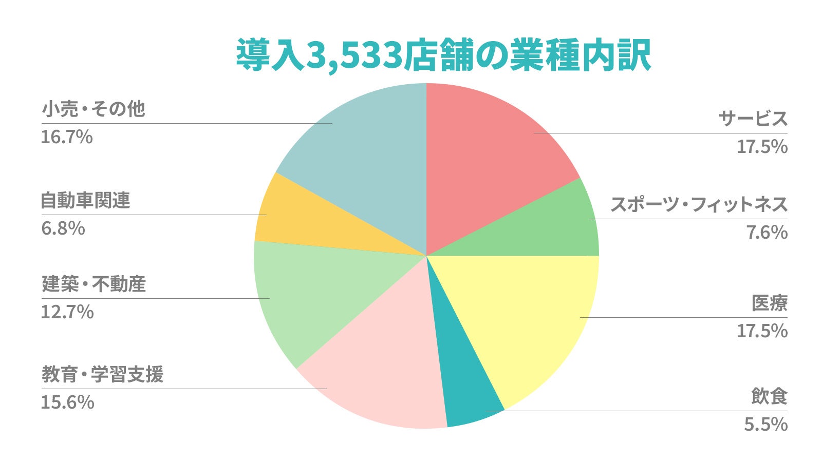 ▲ サービス業をはじめ、医療やスポーツ・フィットネス業、建築・不動産業など多様な業種の企業様にご利用いただいています。『ロカオプ』は業種問わず、店舗や施設、事務所などを持つ来店型ビジネスに対して親和性が高く、取り組みの即効性が高いことも特徴のひとつです。