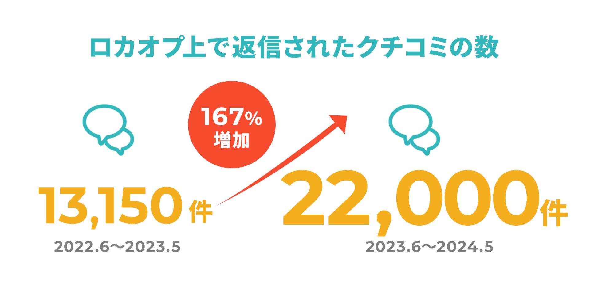 ▲ 『ロカオプ』を使用してクチコミ返信を投稿された数も22,000件となり、前年より167%増加いたしました。
