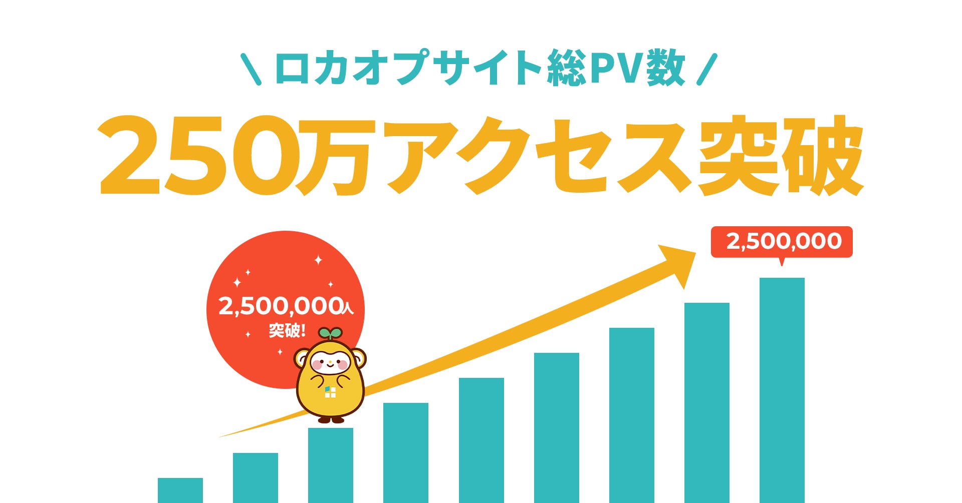 ▲ ロカオプサイトで作成したWebページの総PVも250万アクセスを突破しました。