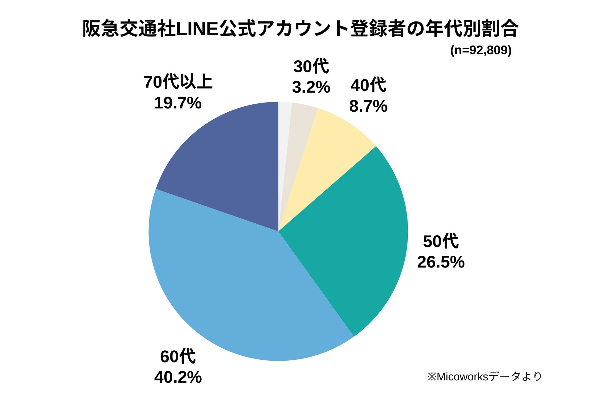 阪急交通社のLINE登録者のうち60代以上が約60%、40代~50代が約35%と、主要顧客層とのデジタル接点を構築できています。