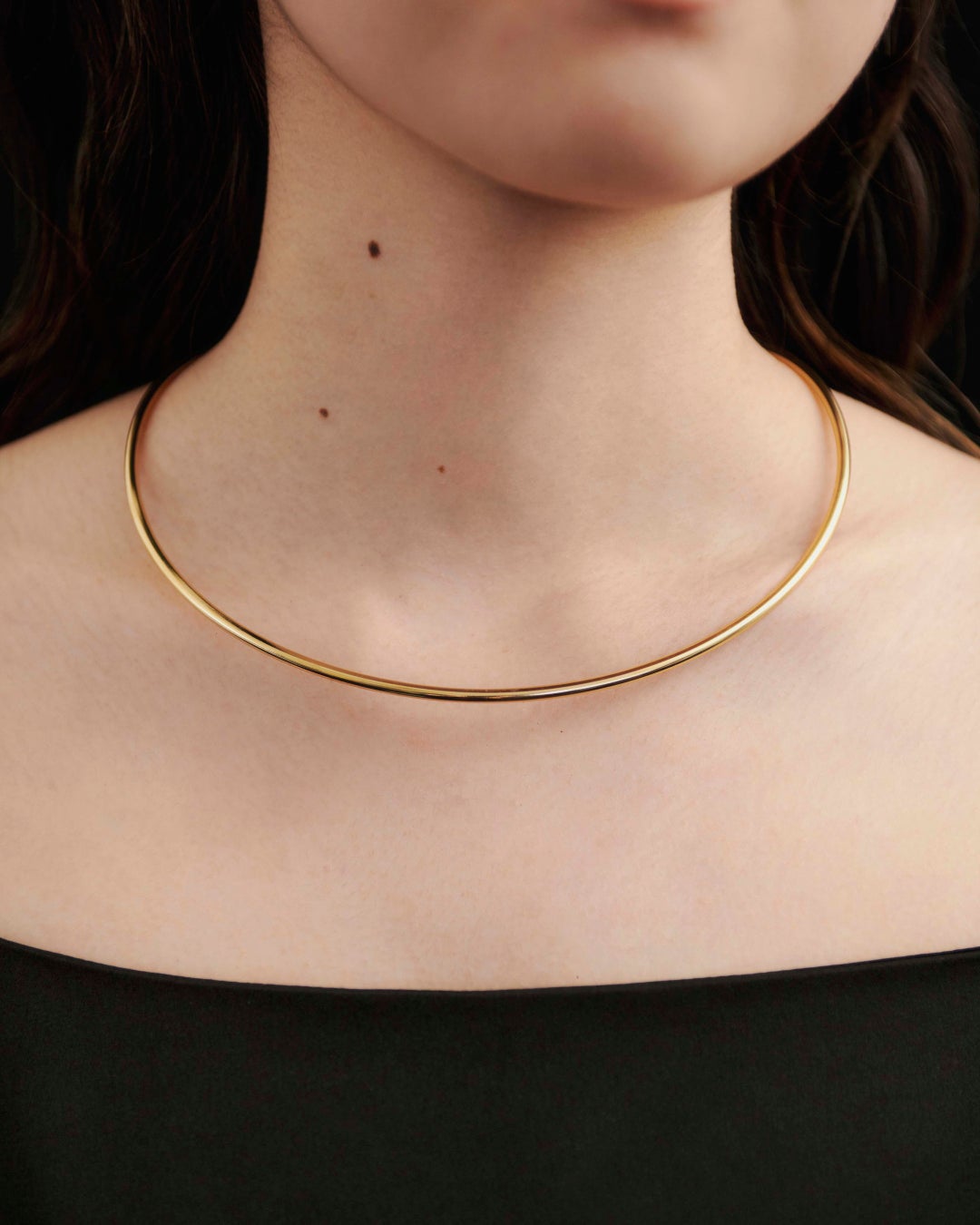 リッチなゴールドとシャープなシルバーでデコルテを華やかに仕上げます。