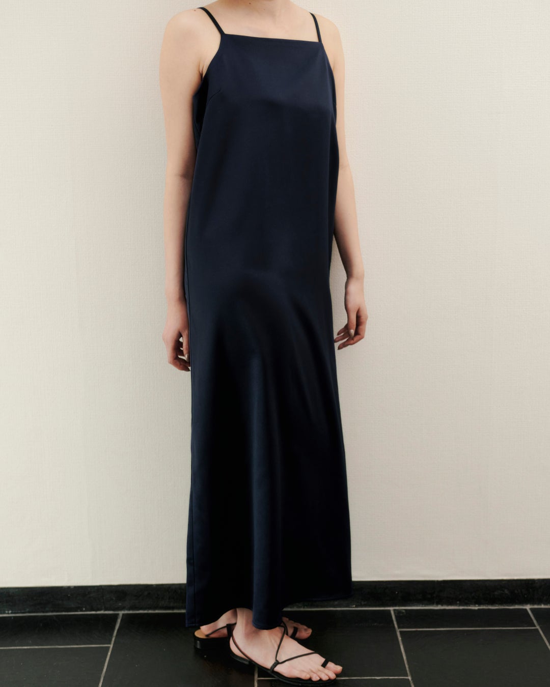 クラシカルなAラインに細めのストラップが華奢で女性らしいワンピースドレス。
