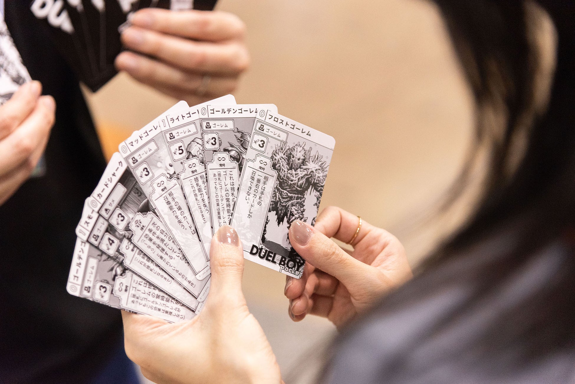 ゲームマーケット会場をバトルフィールドに見立て、街角デュエルを現実のものとしてしまった衝撃作『デュエルボーイポケット』が、7つのボードゲームとコラボ!全56種類のフルカラー新規カードがランダムに収録されたカードパックを販売いたします。