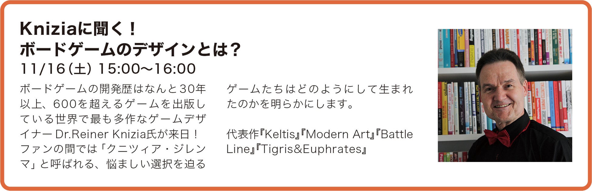 「ゲームマーケットをもっと楽しみたい」「2日間だけでは遊び足りない」といった要望に応えて、参加型の関連イベントを集めた『ゲムマプレウィーク』を、11/4(月・祝)から開催いたします!
