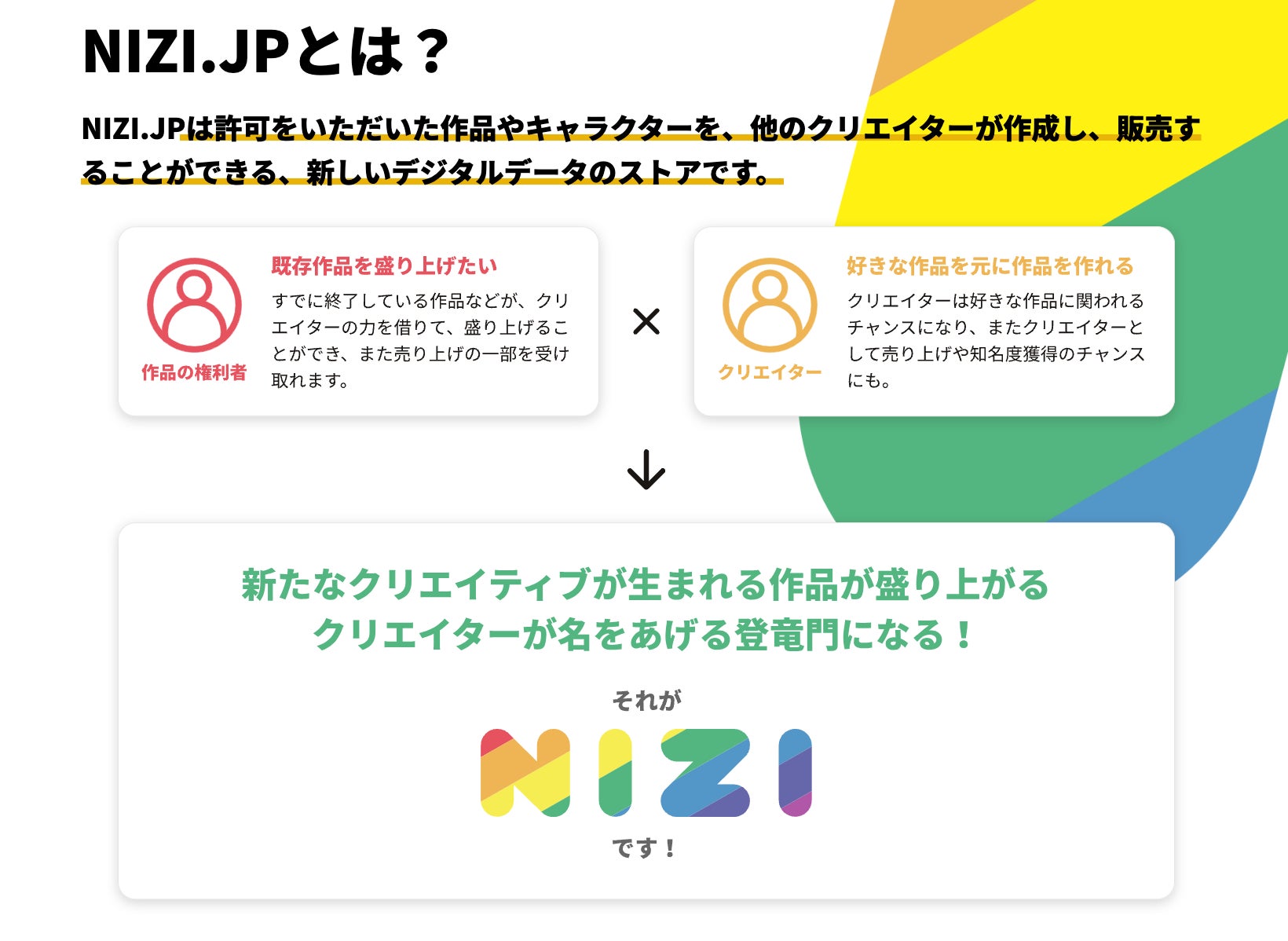 NIZI.JPが目指すのは、「作品の権利者にもメリットのある形で、クリエイターがトリビュート作品を発表できる場を作ることで、すべての創作がより盛り上がる世界にすること」です。