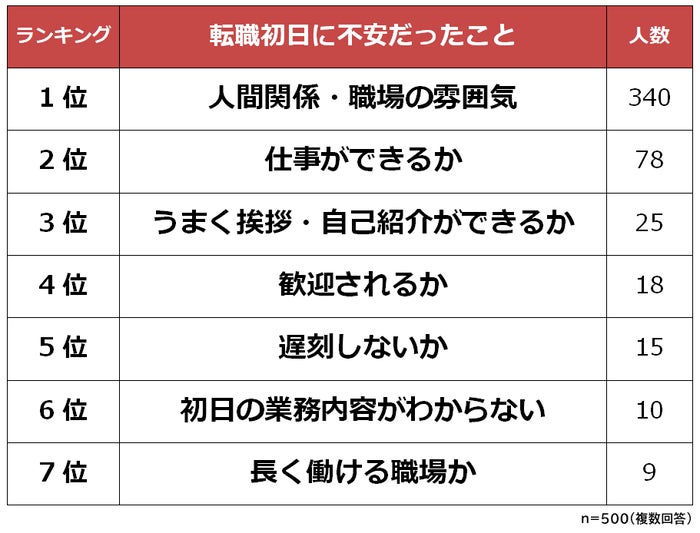 【転職初日に不安だったことランキング】男女500人アンケート調査