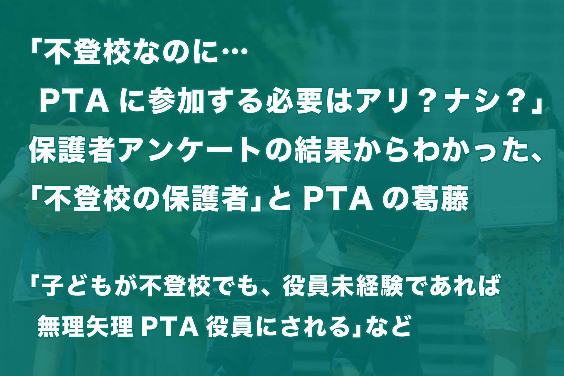 今回のプレスリリースでは、今回は、「子どもが不登校・行き渋りになってから、PTAとの付き合い方がそれまでと変わった方」の声をお伝えいたしました。