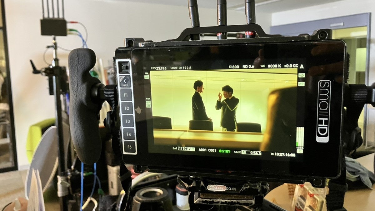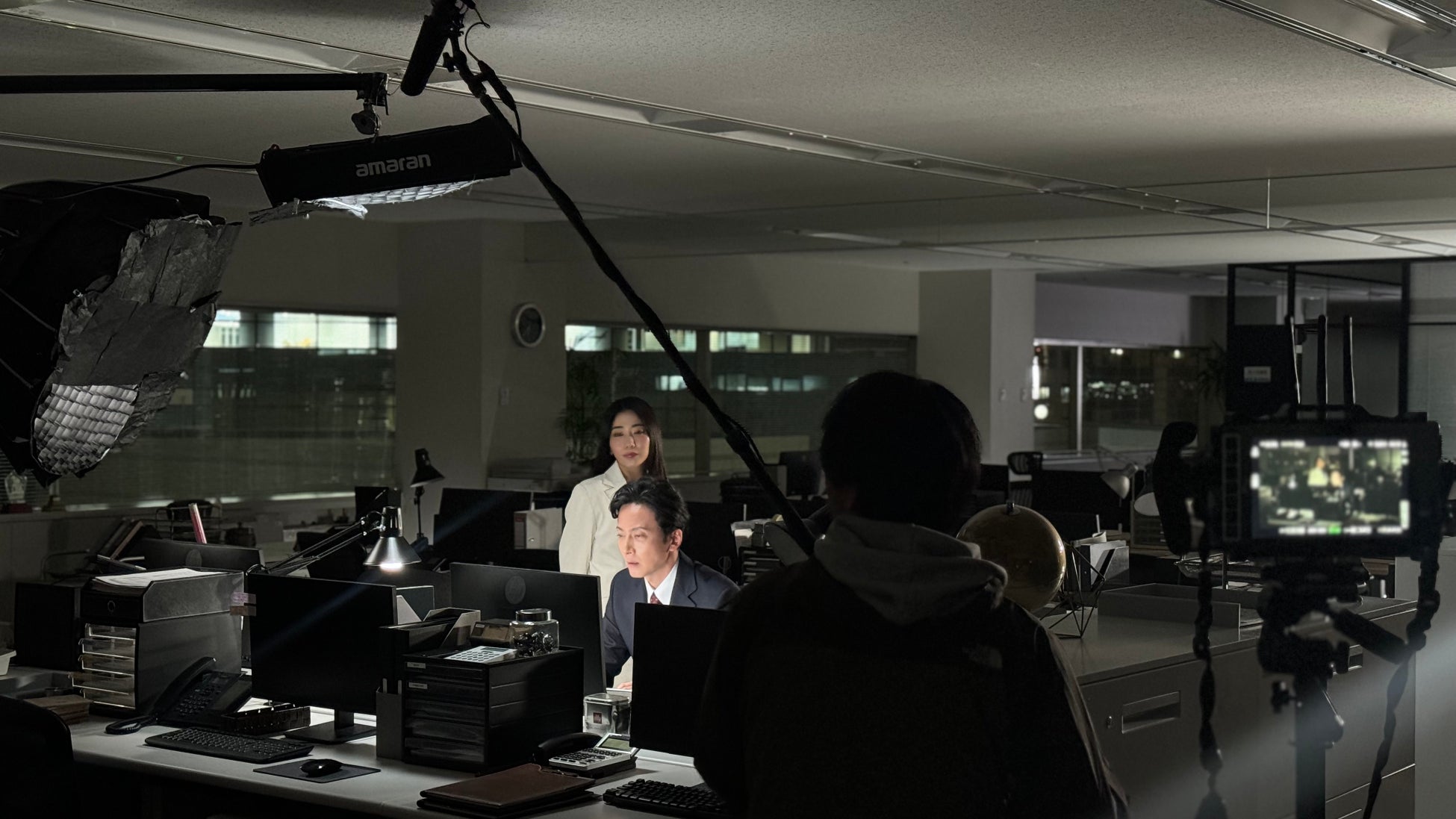 今回のCM撮影では、緊張感のあるシーンが多く、現場でもその雰囲気が自然と表れていました。焦る男性社員と同僚のやり取りでは、ピリッとした空気が漂い、キャストもその緊張感を保ちながら演技に集中。カメラが回るたびに、セリフのテンポや表情に力が入り、迫力あるシーンが撮影されました。