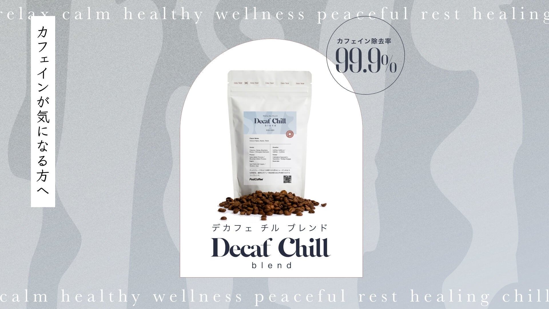 国内最大級のコーヒーのショッピングモール『PostCoffee(https://postcoffee.co/)』を運営するPOST COFFEE株式会社(本社 : 東京都目黒区、代表取締役 : 下村 領)は“カフェインを控えたい、飲めないといった方にも、毎日コーヒーを飲んで幸せな気分を味わってほしい”という想いから、デカフェの定番ブレンドコーヒーDECAF CHILL BLEND (デカフェ チルブレンド)を販売いたします。