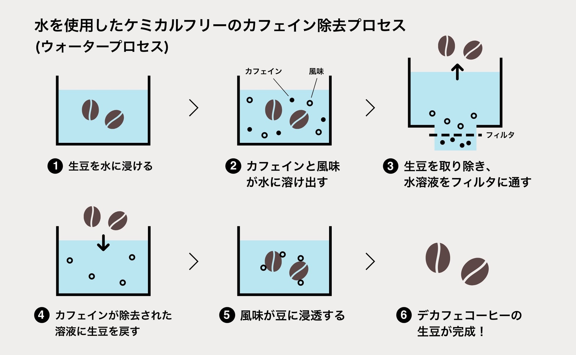 水を使用したケミカルフリーのカフェイン除去プロセスのオリジン2種類をブレンドしました。カフェイン除去率は99.9%となっており、普段カフェインを控えている方や小さなお子様も安心してお召し上がりいただけます。