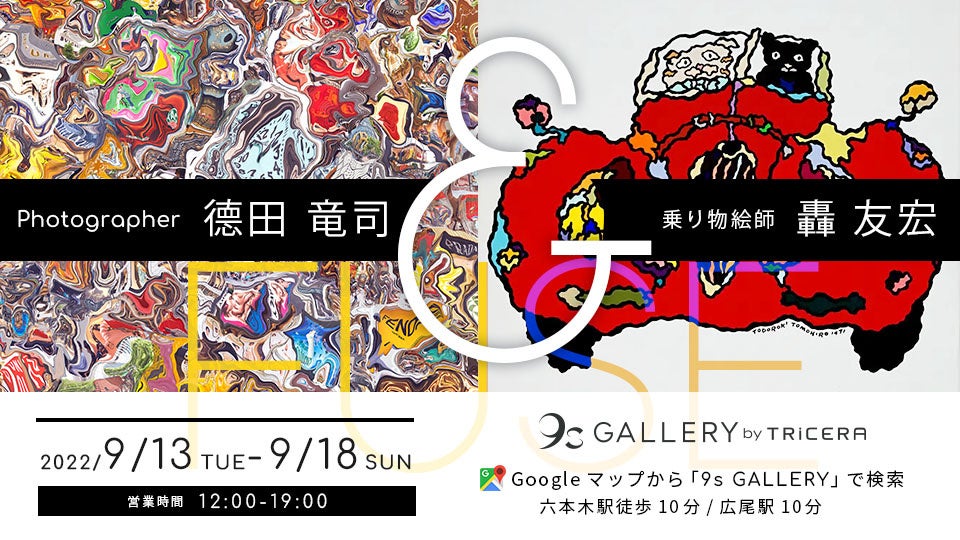 グローバルアートマーケットプレイス「TRiCERA ART」を運営する株式会社TRiCERA(所在地:東京都港区、代表取締役:井口 泰)は、德田竜司と轟友宏による展示会「FUSE」を2022年9月13日(火)〜9月18日(日)に六本木・西麻布エリアのギャラリー「9s GALLERY by TRiCERA」で開催いたします。